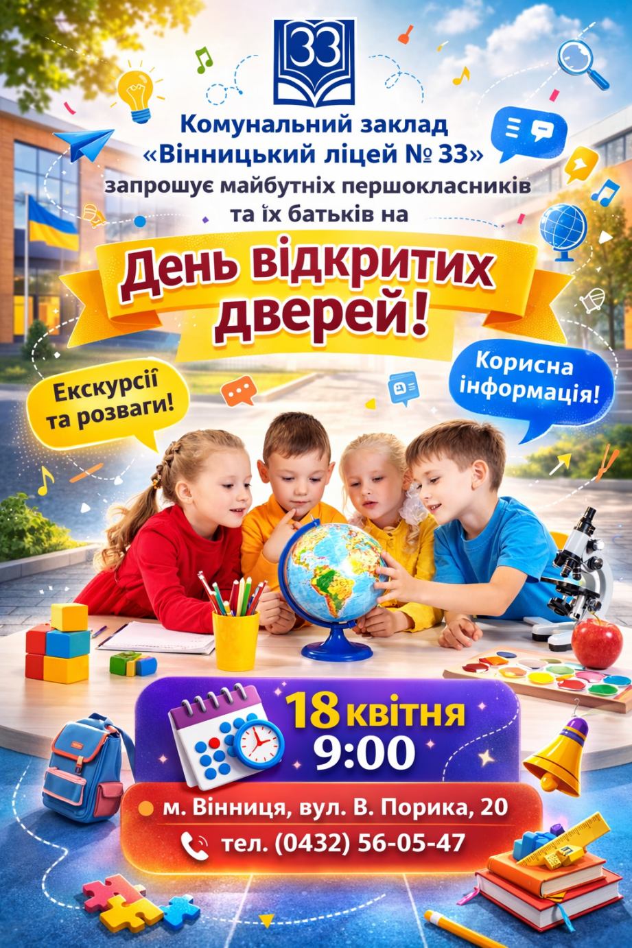 Адреса: вул. Василя Порика 20, м.Вінниця, Україна тел. (0432)-56-05-47 e-mail sch33 at galaxy.vn.ua